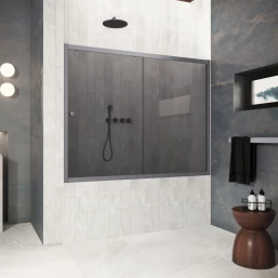 Шторка на ванну Vegas Glass ZV Protec 150 06 07 150 см, профиль оружейная сталь матовый, стекло графитовое