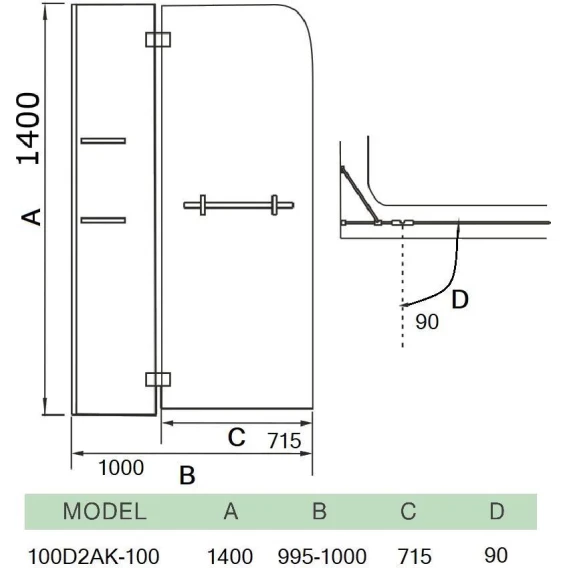Шторка на ванну WeltWasser 100D2AK-100 10000001237 100 см, профиль хром, стекло прозрачное