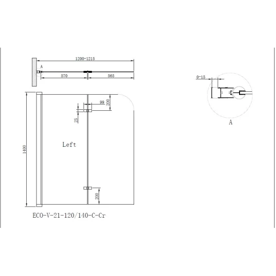 Шторка для ванны Cezares Eco 120 см прозрачное стекло ECO-O-V-21-120/140-C-Cr