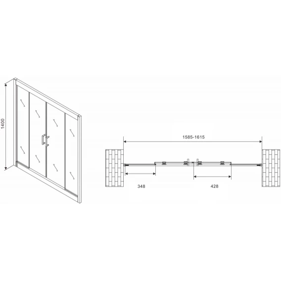 Шторка для ванны 160 см Abber Schwarzer Diamant AG57160 прозрачное