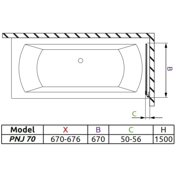 Шторка для ванны Radaway Carena PNJ 67 R прозрачное