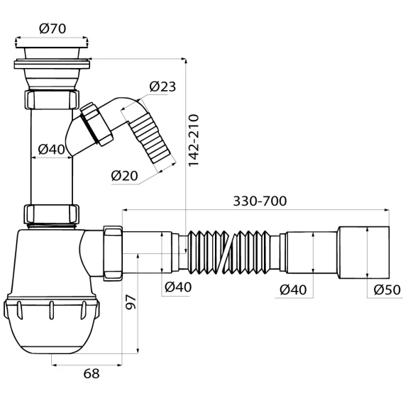 Сифон для кухонной мойки IDDIS Optima Home 900AVG1010VD 1 1/2"-40x40/50