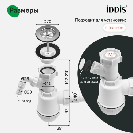 Сифон для кухонной мойки IDDIS Optima Home 900AVG1010VD 1 1/2