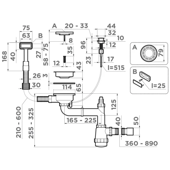 Клапан-автомат, Выпуск, Перелив, Гофра, Штуцер