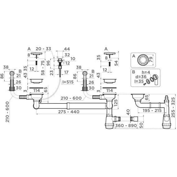 • Арматура с клапаном-автоматом для двухчашевых моек с круглыми переливами;• Идеально подходит для моек OMOIKIRI BOSEN 59-2, BOSEN 80-2.