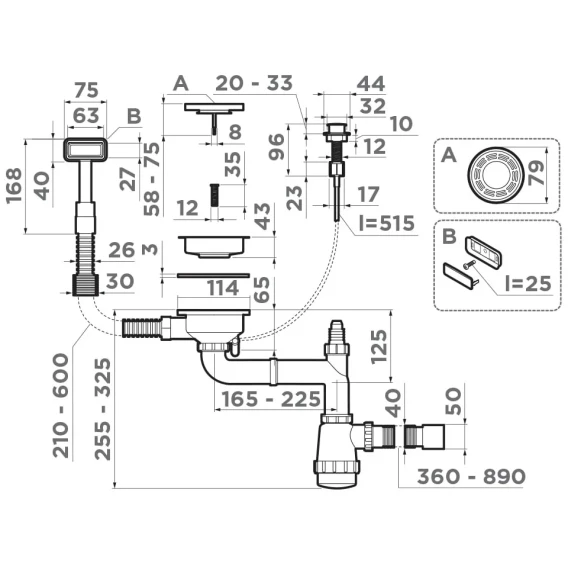 Клапан-автомат, Выпуск, Перелив, Гофра, Штуцер