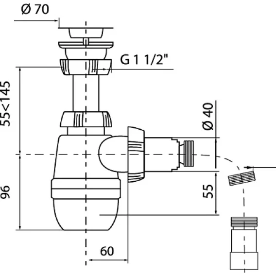 Сифон для кухонной мойки Wirquin Минор 30718026 1 1/2"-40x40/50