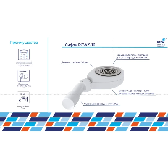 Сифон для поддона Ø 90 мм RGW S-16 44241600-01