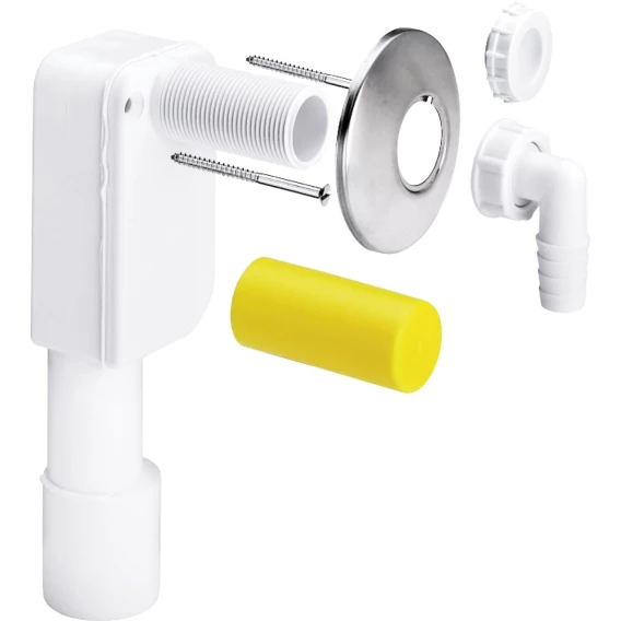 вертикальная сливная труба, крепежные винты, защитный колпачок для резьбы, резьбовое соединение шланга под углом 90 °, закрывающий колпачок, розетка из нержавеющей стали