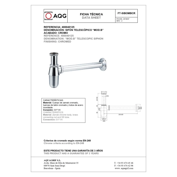 Сифон для раковины AQG Mod. B 400040125 1 1/4"-32, хром