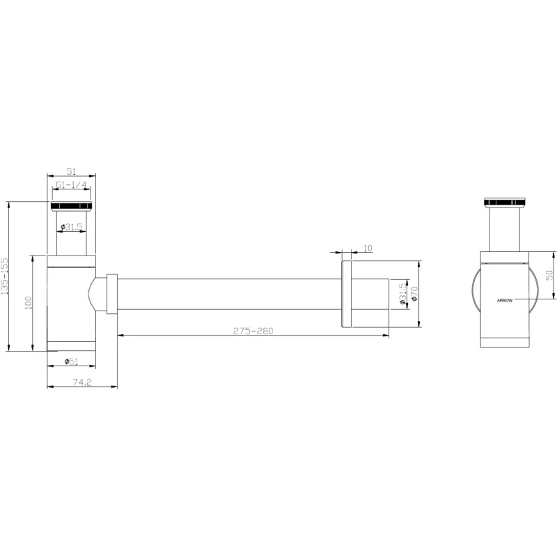 Сифон для раковины Arrow AG5828MB 1 1/4"-32, черный матовый