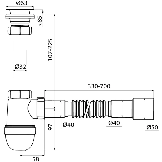 Сифон для раковины IDDIS Optima Home 900BVG0010VD 1 1/4"-40x40/50