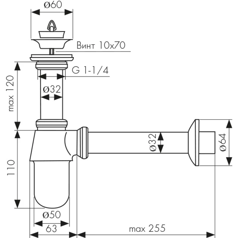 Сифон для раковины Kaiser 9592 1 1/4"-32, хром