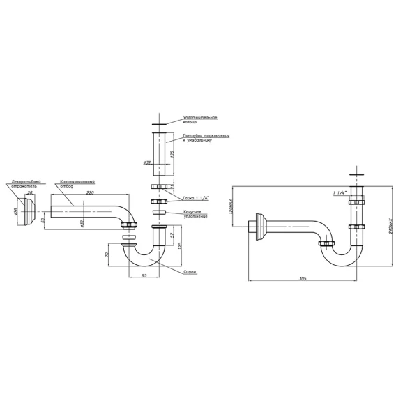 Сифон для раковины 1 1/4"-32 McALPINE MRW1