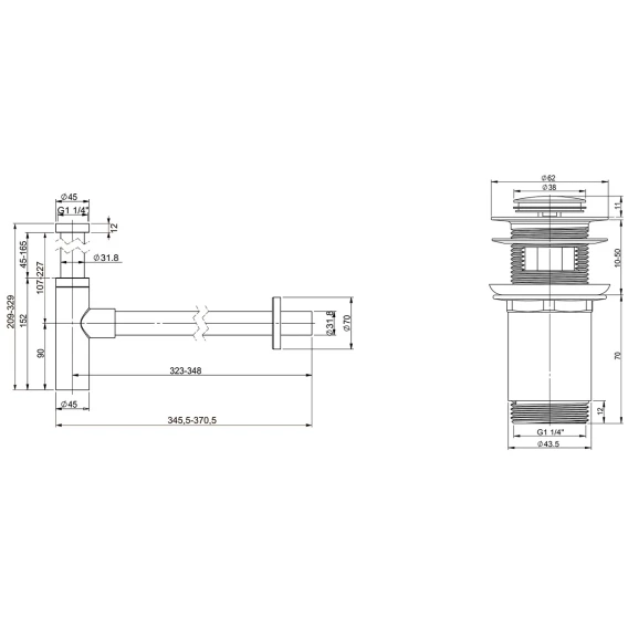 Сифон для раковины Wellsee Drainage System 182119000 + 182129000