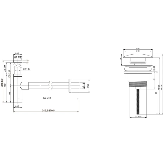 Сифон для раковины Wellsee Drainage System 182123000 + 182143000