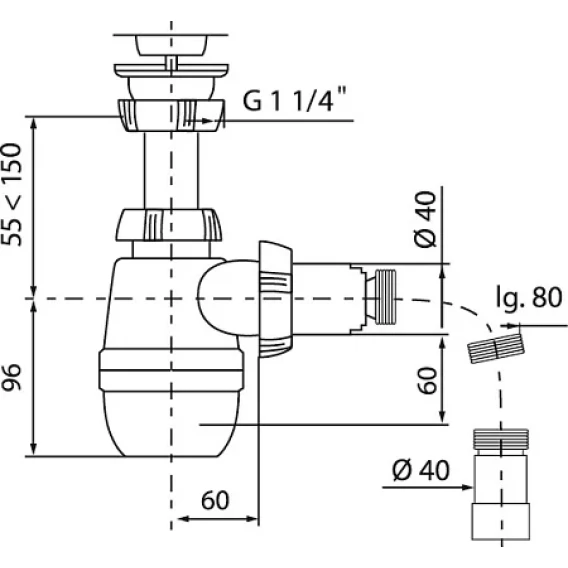 Сифон для раковины Wirquin 30717349 1 1/4"-40x40/50