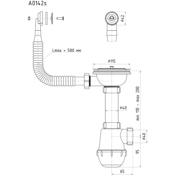Сифон для кухонной мойки 3 1/2-40 АНИ пласт A0142S