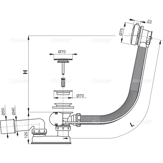 Слив-перелив для ванны AlcaPlast A551KM