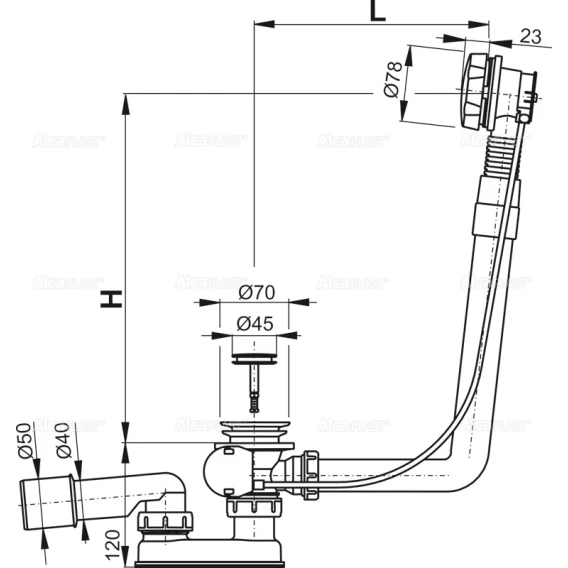 Слив-перелив для ванны AlcaPlast A550K