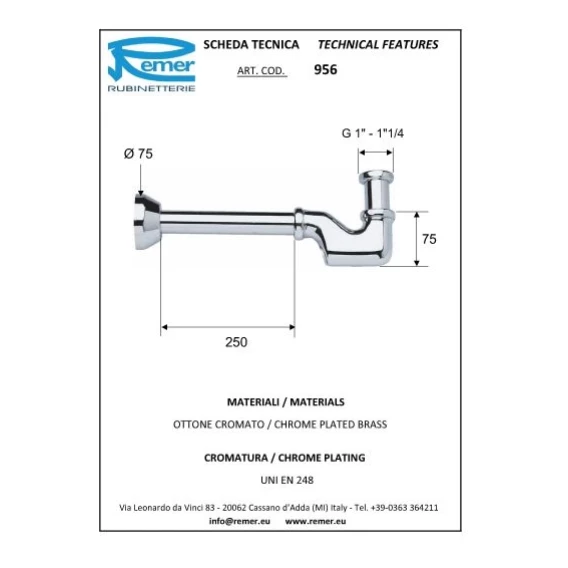Латунный сифон для биде Remer 956114