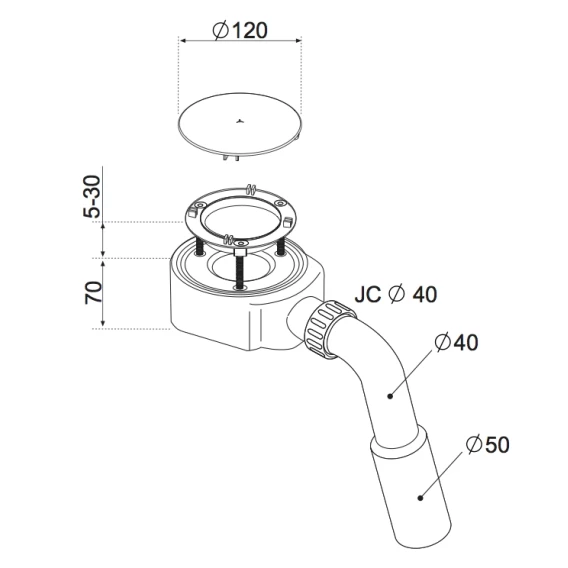 • Диаметр сливной трубы 40/50 мм, высота сифона 70 мм.