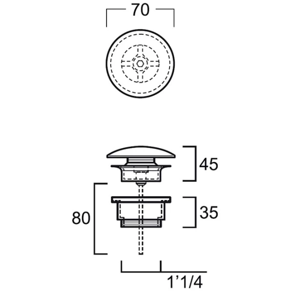 Донный клапан для раковины Wonzon & Woghand WW-88SS08-CR без перелива, хром