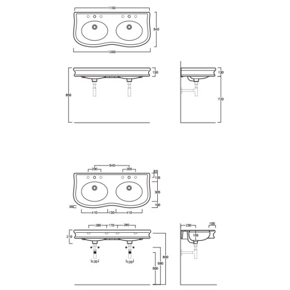 Раковина двойная 120x54 см Simas Lante LA12bi*1