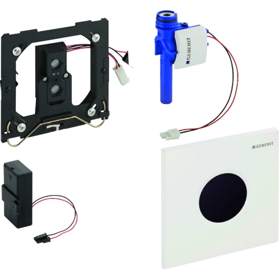 Характеристики Защитная крышка с предохранителемНадежное ИК-распознавание на расстоянииИК-датчик с автоматическими регулировкамиИК-датчик присутствия с распознаванием пользователяРегулируемый гибридный режим экономии водыРегулируемое время смываВручную регулируемое время смываРегулируемая периодическая подача водыДинамическая регулировка времени смываРегулируемый предварительный смывВозможна модернизация для эксплуатации с писсуаром с крышкойОднократный смыв при активации подачи электропитанияС питанием от батареиПредупреждение о низком заряде батареиФункция закрывания вентиля при разряженной батарееФункции регулируются и запрашиваются при помощи пульта для настройки GeberitВозможно отключение задействования смыва через Geberit Clean-HandyОбъем смыва может уменьшаться с помощью регулирующего винта монтажного комплекта до 0,5 л на смывII группа запорных клапанов согласно стандарту DIN 4109