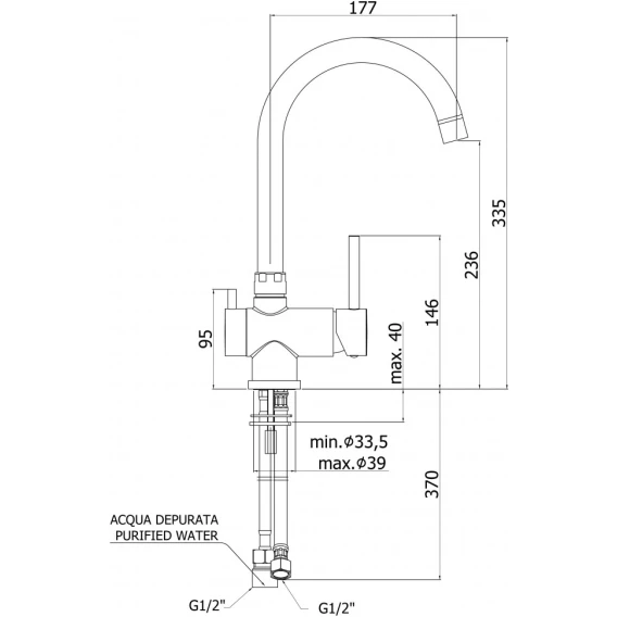 Высота излива 23.6 см