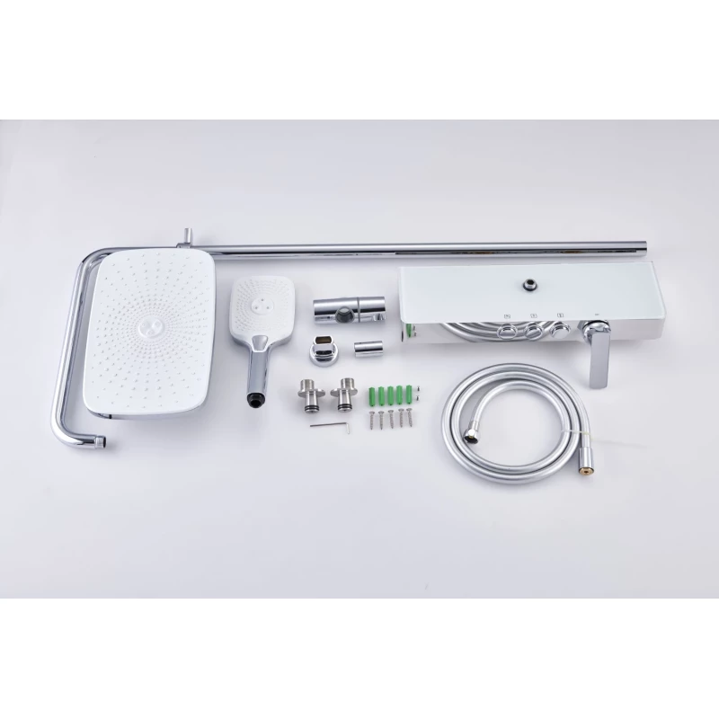 Металлическая розетка, Эксцентрики, Душевой шланг, Душевая лейка, Держатель для душевой лейки, Полочка, Верхний душ, Кронштейн, Штанга душевая, Термостат