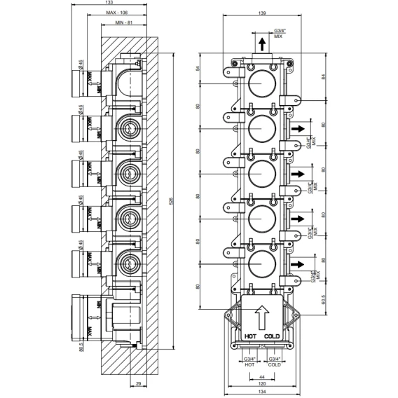 Термостат для ванны Gessi Gessi316 54520#239 встраиваемый, нержавеющая сталь