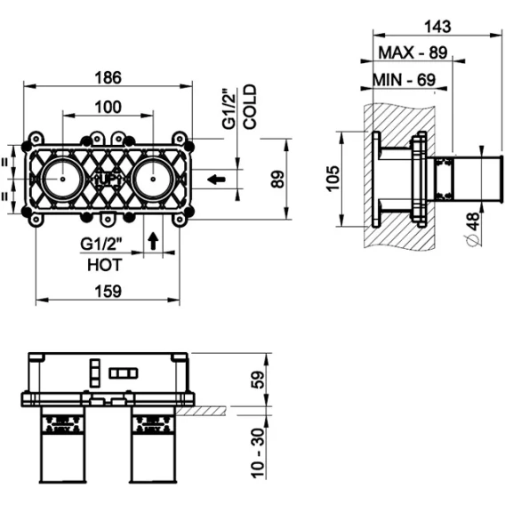 Смеситель для раковины Gessi Via Tortona 44825#031 встраиваемый, без донного клапана, хром