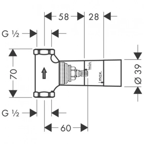 Скрытая часть запорного вентиля Hansgrohe 15974180, СМ, керамика, 1/2. · расход воды 40 л/мин