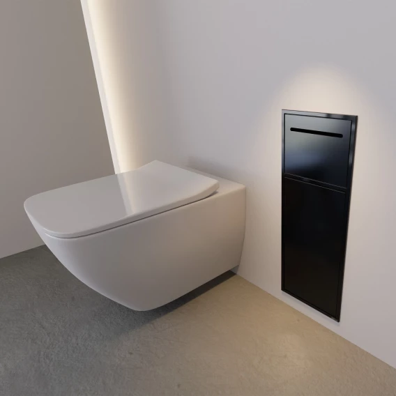 Скрытая настенная ниша Abber Nischen AN3008MB с корзиной и бумагодержателем, черный матовый