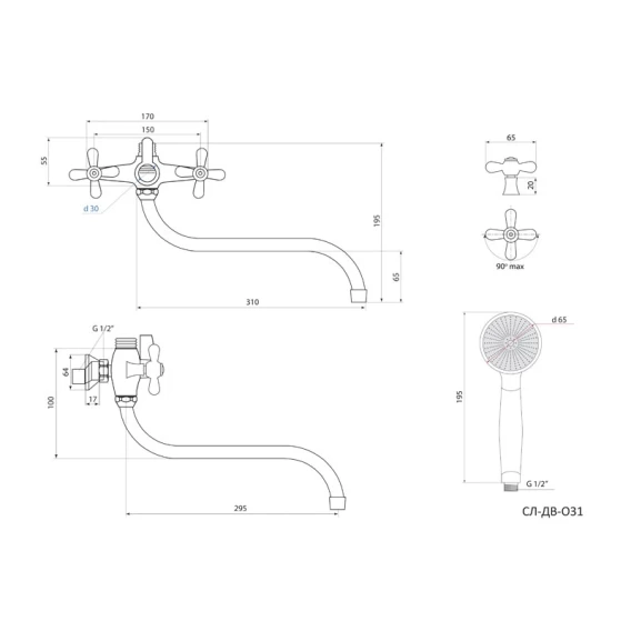 Смеситель для ванны Славен Прораб Серия-О СЛ-ДВ-О31