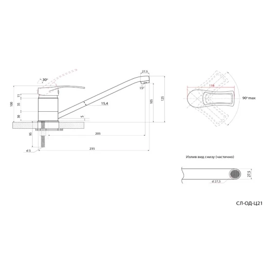 Смеситель для кухни Славен Прораб Серия-Ц СЛ-ОД-Ц21