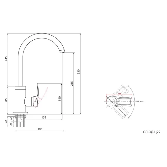 Смеситель для кухни Славен Прораб Серия-Ц СЛ-ОД-Ц22
