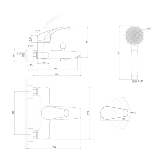 Аэратор, Металлическая розетка, Эксцентрики, Душевой шланг, Душевая лейка, Держатель для душевой лейки