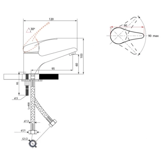 Смеситель для раковины без донного клапана Rea Storm REA-B6202