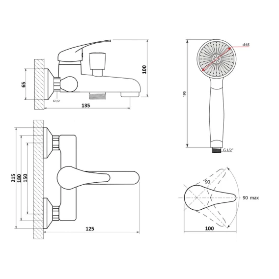 Аэратор, Металлическая розетка, Эксцентрики, Душевой шланг, Душевая лейка, Держатель для душевой лейки