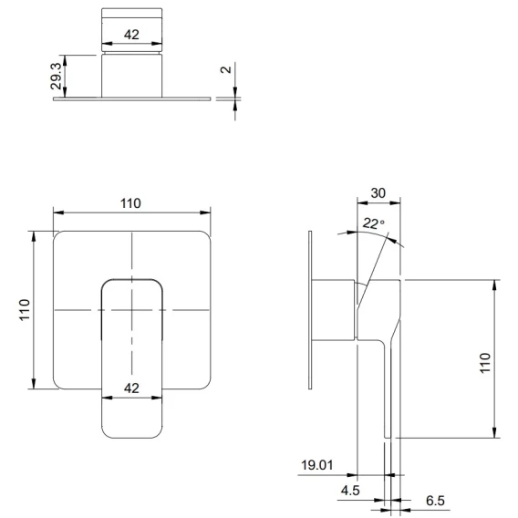 • минимальная глубина для установки: 4,5 см, два входа (для горячей и холодной воды): 1/2”,