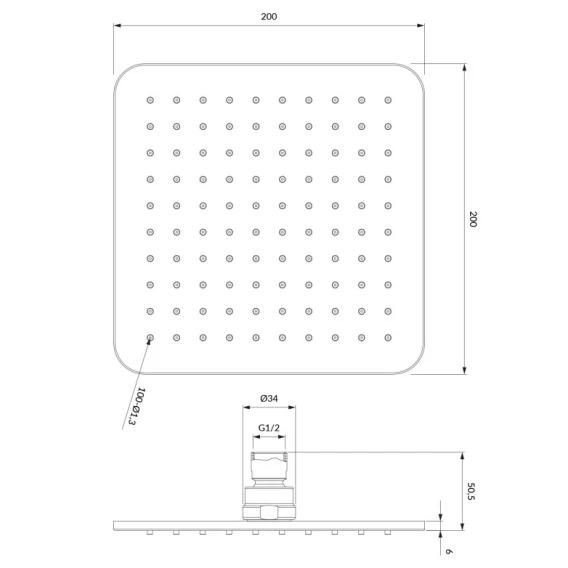 Верхний душ 200 мм Omnires Slimline WG220/OCRB
