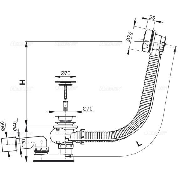 Слив-перелив для ванны AlcaPlast A51BM-120 полуавтомат, белый