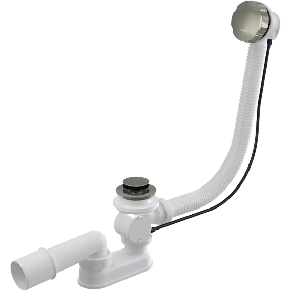 Слив-перелив для ванны AlcaPlast A55K-N-P полуавтомат, никель глянец