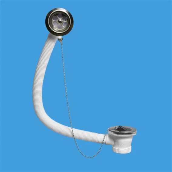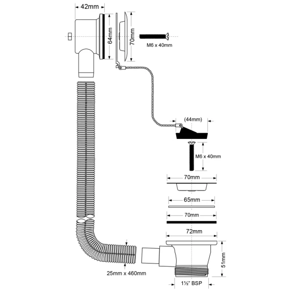Слив-перелив (L460ммхD25мм) для ванн/поддонов с нержавеющими решетками, пробкой и цепочкой; выход 1 1/2"«папа»