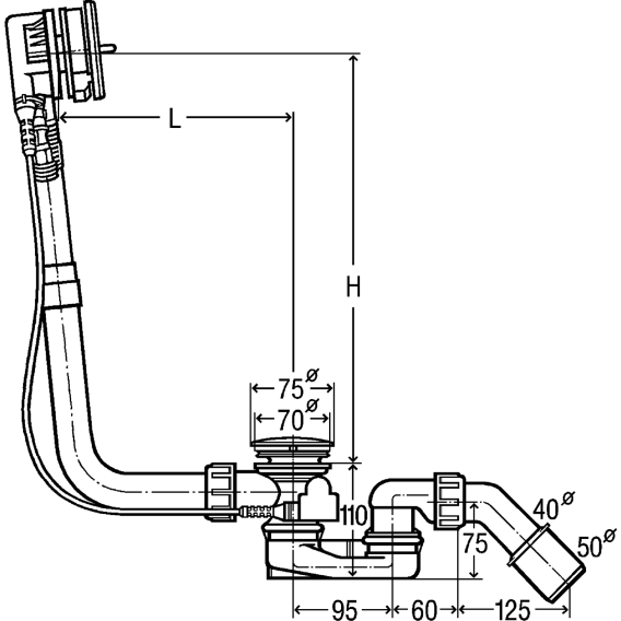 хромированная поворотная розетка, хромированная сливная пробка, хромированная заглушка, впускной фланец, сифон, сливное колено 45°, хромированный клапан