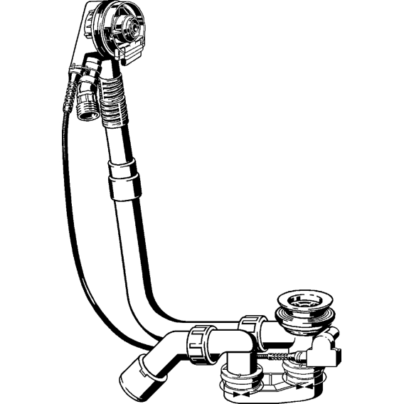 входной фланец, сифон, сливное колено 45°, хромированный клапан