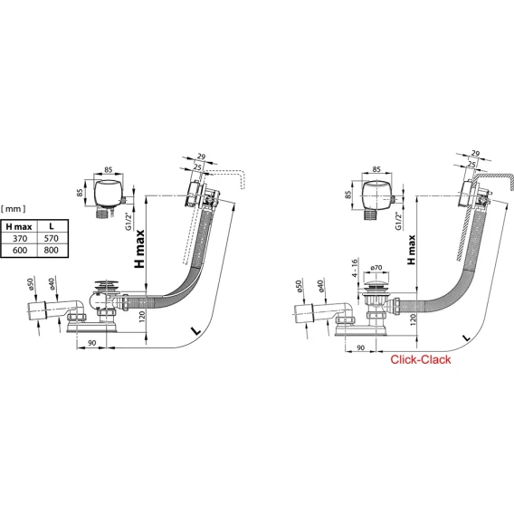 Сточный комплект с заполнением через перелив устанавливается в ванну в случае использования смесителя скрытого монтажа. Вода поступает в ванну из излива, который вмонтирован в переливное отверстие и управляется при помощи смесителя, расположенного в стене рядом с ванной. Изготовлен из высококачественных материалов.В сточных комплектах с управлением сливом крышка перелива (которая является и ручкой управления) и сливная пробка соединены тросом. Повернув ручку управления, можно закрыть или открыть сливную пробку. Закрытие слива сточного комплекта с механизмом Click-Clack осуществляется нажатием на крышку сливной пробки. При повторном нажатии слив открывается.Вы можете выбрать сточный комплект для ванны с переливом длиной 570 мм или 800 мм с управлением сливом при помощи тросика или механизмом Click-Clack. В состав каждого сточного комплекта входит сифонСточные комплекты с заполнением через перелив подходят для всех ванн, кроме Avocado, BeHappy II, Classic. Сточные комплекты с заполнением через перелив длиной 570 мм нельзя устанавливать на ванны Formy 01, Formy 02 и City/City Slim.