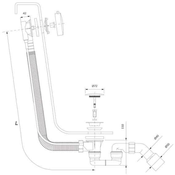 • предназначен для ванн с диаметром сливного отверстия ø5,2 см